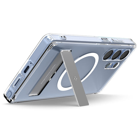 Stronger clarity with a smarter design. The Spigen Ultra Hybrid S MagFit Case for Galaxy S25 Ultra features a clear back with reinforced bumper protection, built-in kickstand, and MagSafe compatibility. Showcase the original design of your Galaxy S25 Ultra while enjoying hybrid protection, hands-free viewing, and a secure magnetic connection for charging and accessories.